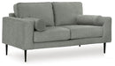 Simple comfort meets modern function in this loveseat. An apt addition to apartments and other small spaces, the slim-profiled piece welcomes you with its cozy character. A subtle chevron pattern on the cushions refresh the classic neutral hue, elevating the look while still suiting a variety of styles. Black accent legs add a dash of contemporary flair.