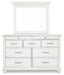 | Details | Includes dresser and mirror, Made with solid wood, veneers and engineered wood, Distressed whitewash finish, Dark gray pewter-tone finished metal hardware, 7 smooth-gliding drawers, plus 2 small-scaled accessory drawers, Mirror attaches to back of dresser, Assembly required | |