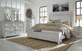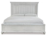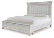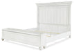 Give your retreat vintage charm with this queen panel bed and storage footboard. In a beautifully distressed whitewash finish, you'll love the headboard's grand style featuring a picture framed panel. The bench footboard is equally elegant offering extra storage and a convenient seat. Generously scaled moulding from top to bottom, along with bun feet give this bed character—evoking the feel of a quaint cottage escape.