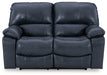 Focus on function. This practical power reclining loveseat balances contemporary character and irresistible comfort. Its affordable, expertly matched leather and faux leather upholstery keeps your style up to speed without breaking the bank. Reclining with the touch of a button, this piece plays well in relaxed, luxe seating areas made for quality time.