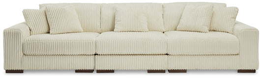 Plush and posh. Showcase your eye for on-trend texture with the statement-making cord upholstery of this oversized accent ottoman. Its stunningly soft fabric entices in an ivory hue, complementing contemporary color palettes. Let your feet sink into the spacious cushion and plan to stay a while—this cozy living room ottoman highlights your high-end approach to comfort and style.