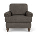 Spirit Meets Style The Moxy chair ensures you never have to settle for anything other than the perfect design, no matter your style. Formal panel roll arms sit on round turned legs that are available in three distinct wood finishes—Florentine, Valencia, or Urban Renewal—to complement any décor. The removable T-shaped seat cushion offers a distinctive look and added comfort. Sink into the ideal level of support with your choice of our luxury or plush cushion. Complete the look and showcase your lifestyle with hundreds of different fabric choices, including high-performance and sustainable textiles. Superior frame construction and our patented C-Flex Blue Steel Spring™ ensures your Moxy can be enjoyed for years to come. Formal panel roll arm style Off-the-floor round turned leg come in Valencia, Florentine, or Urban Renewal finishes Semi-attached back cushion remains fixed in place, ensuring a clean look and comfortable feel Removable seat cushion in a distinctive T-shaped style Sit comfortably with a luxury cushion featuring a moderately firm polyurethane foam core wrapped with a soft fiber wrap, or select a plush cushion featuring a high-resiliency polyurethane foam core wrapped with a soft fiber wrap for added support Built to last with the Flexsteel patented C-Flex Blue Steel Spring™ that provides an elevated level of support Available in hundreds of fabric choices, including those with robust performance and sustainability characteristics Model Number: 5018-10 Dimensions 37H x 38W x 39L
