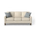 Spirit Meets Style Cozy up with a loved one or claim it all for yourself with the Moxy sofa that lets you personalize details for the perfect look and feel. Rounded mailbox arms provide a clean look. Square tapered legs come in your choice of three distinct wood finishes—Florentine, Valencia, or Urban Renewal—to complement any décor. The removable square, inside seat cushion style offers you the flexibility to rotate for added longevity. Sink into the ideal level of support with your choice of our luxury or plush cushions. Complete the look and showcase your lifestyle with hundreds of different fabric choices, including high-performance and sustainable textiles. Superior frame construction and our patented C-Flex Blue Steel Spring™ ensures your Moxy can be enjoyed for years to come. Rounded mailbox arms provide a contemporary look Off-the-floor square tapered legs come in Valencia, Florentine, or Urban Renewal finishes Semi-attached back cushions remain fixed in place, ensuring a clean look and comfortable feel Removable seat cushions in a classic square style Sit comfortably with luxury cushions featuring a moderately firm polyurethane foam core wrapped with a soft fiber wrap, or select plush cushions featuring a high-resiliency polyurethane foam core wrapped with a soft fiber wrap for added support Built to last with the Flexsteel patented C-Flex Blue Steel Spring™ that provides an elevated level of support Available in hundreds of fabric choices, including those with robust performance and sustainability characteristics Comes with two accent pillows to enhance comfort and style Model Number: 5039-31 Dimensions 37H x 82W x 39L