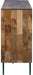 Storage options abound with this accent cabinet featuring 4 chevron pattern doors accented by long dark gray finished metal door pulls. Store dinnerware, cookbooks and many other options within the sideboard which features 2 fixed shelves. The light brown finish will complement virtually any room decor.