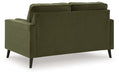 This loveseat strikes the perfect balance between elevated and eclectic. Contemporary lines and a richly hued velvet upholstery keep things chic. Design details like button tufting and splay legs add mod flair. It’s sure to keep your living room luxuriously on trend—at a price that won’t break the bank.