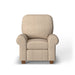 Simple, Classic Tailoring in a Timeless Style Showcase your home with the timeless charm of the Thornton high-leg recliner. Smoothly rolled edges and arms, tapered block legs, and a welt-corded trim make it the quintessential living area piece. Offered in your choice of fabric, this recliner provides the style and comfort that has made it one of our long-time best sellers. Transitional style with rolled arms and a welt-corded trim detail Smoothly recline back for added comfort and relaxation Upholstered in your choice of fabric, including those with performance and sustainability characteristics The patented Blue Steel Spring™ seat system provides unmatched support and lasting comfort Sustainably-sourced, kiln-dried wood frame with mortise and tenon joinery for lasting strength and durability High resiliency seat cushion is engineered to maintain its shape over time Fiber-filled, semi-attached back cushion is designed to stay in place for a tidy appearance Square tapered legs are available in three finish options Handcrafted in North America Model Number: 5535-503 Dimensions 41H x 38W x 39L