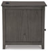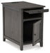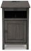 Add big character to a small space with this chairside end table. With its compact size and strong silhouette, it can go anywhere and blend easily into the decor. Less is so much more with the Shaker-inspired design and gray wood tone finish. Loaded with form and function, this end table displays accent pieces and stores essentials securely while keeping devices powered up.