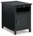 Add big character to a small space with this chairside end table. With its compact size and strong silhouette, it can go anywhere and blend easily into the decor. Less is so much more with the Shaker-inspired design and black wood tone finish. Loaded with form and function, this end table displays accent pieces and stores essentials securely while keeping devices powered up.