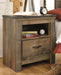 Details Made of engineered wood (MDF/particleboard) and decorative laminate, Warm rustic plank finish over replicated oak grain with authentic touch, Antiqued bronze-tone hardware, 1 storage cubby, 1 smooth-operating drawer, Nailhead accents, 2 slim-profile USB charging stations, Power cord included; UL Listed, Assembly required
