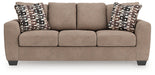 Transitional and right on trend. This queen sleeper sofa’s upholstery is a delightful change from the ordinary, with hints of soft brown giving the gray hue added depth. A built-in memory foam mattress easily pulls out to accommodate overnight visitors. It’s punctuated with chic accent pillows in an eye-catching, stylized stripe design. Whether you're hosting friends and family or relaxing solo, this sleeper sofa invites homey, comfortable character into your space.