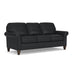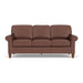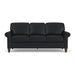 Deep seating with refined style Lean back and look sophisticated in this Westside classic. Rolled arms and tapered wooden legs elevate an angled profile so you can sit back and relax elegantly. Soft boxed seat and back cushions paired with quality construction provide years of comfortable seating for you and your family. Also available in fabric. Model Number: 3979-30 Dimensions 37H x 79W x 37L