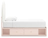 Pretty in pink. This twin upholstered panel bed with storage keeps the spirit of your home’s modern aesthetic while suiting all your young one’s needs. Its cozy-cute upholstery and subtle blush finish bring a playful, charming vibe to bedtime. Made for her and styled for you, it’s a lovely addition to a beautifully chic child’s bedroom.